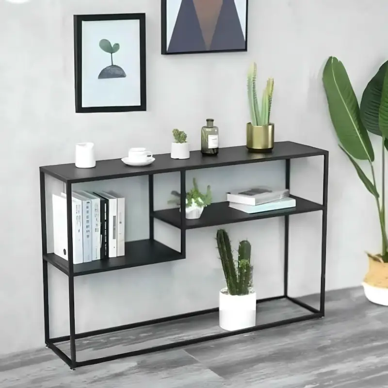 Description Console Étagère Métallique Noire – H100 x L120 x P30 cm :