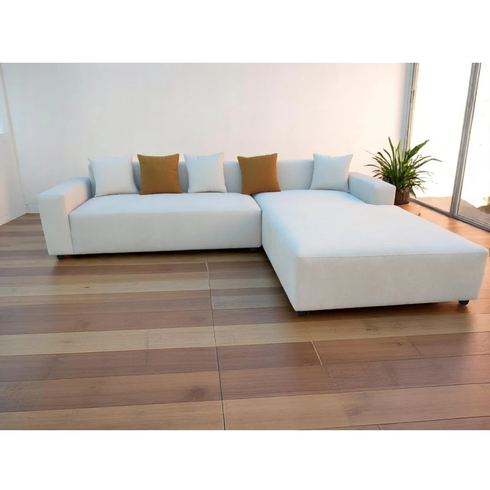 Découvrez notre salon de coin Kubo fabriqué dans notre atelier avec une structure en bois rouge solide et un tissu résistant antitache. Son design contemporain s’adapte à tous les styles d’intérieur. Confortable, durable et doté d’une méridienne spacieuse, il convient parfaitement à tous les espaces. Profitez d’un prix exceptionnel en Tunisie grâce à notre fabrication directe, sans intermédiaires.
